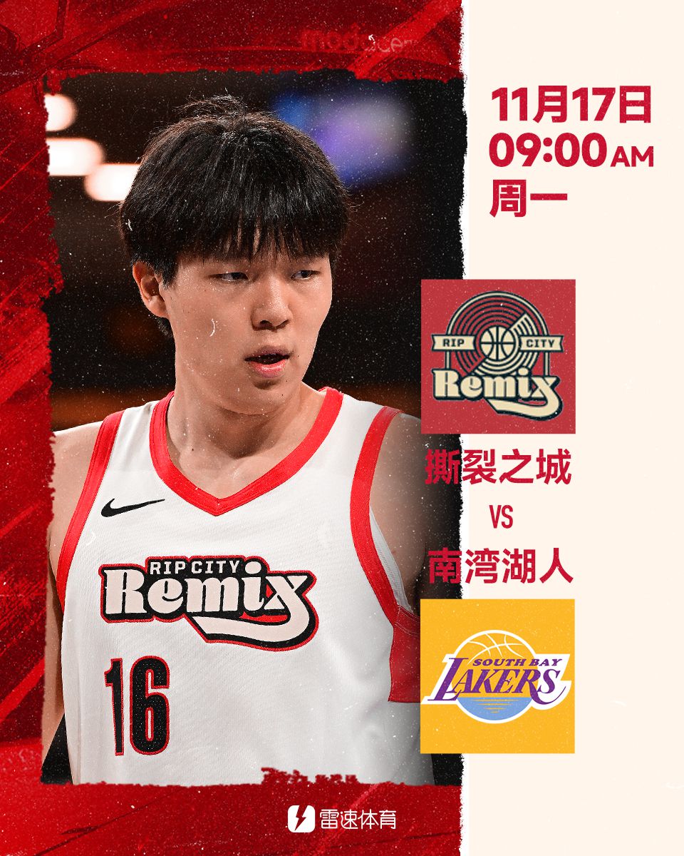 6686体育app11月16日讯 明日,NBA-G联赛事撕裂之城混音将对阵南湾湖人,开拓者16号秀杨瀚森也即将迎来自己发展联盟的第二场竞赛。