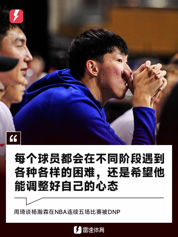 周琦回答:“建议谈不上,每个球员都会在不同的阶段遇到各种各样的艰难,还是期望他能调整好自己的心态。”
