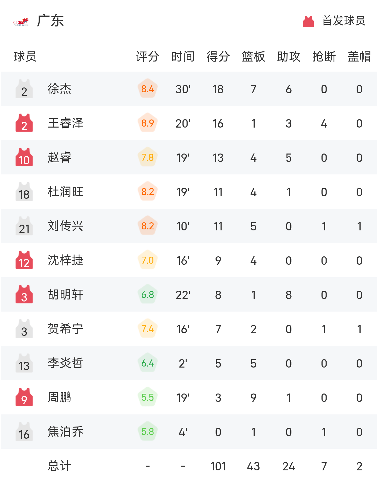 徐杰砍下全场最高的18分7板6助,赵睿13分4抢篮板5助攻,率领广东胜利取胜,夺得本届全运男篮金牌。