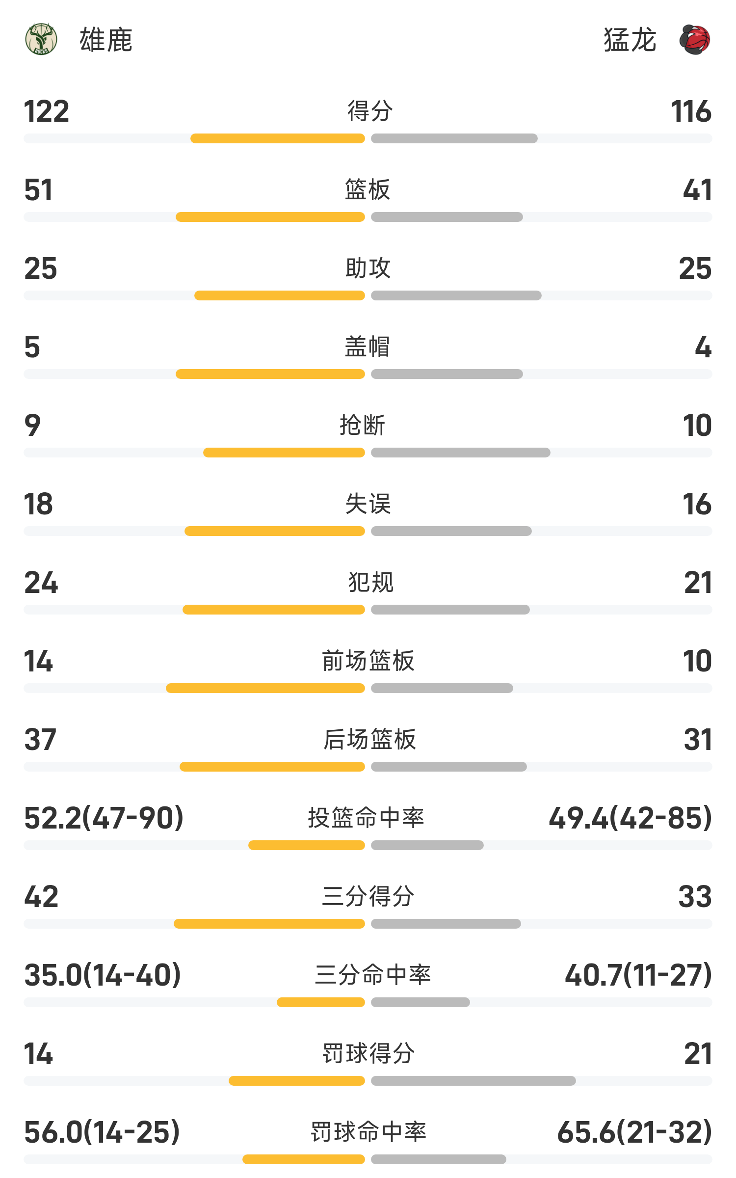 6686体育app10月25日讯 25/26赛季NBA 常规赛,猛龙对阵雄鹿。双方全场战罢,猛龙116-122不敌雄鹿。阿德托昆博砍下全场最高的31分20板7助,率领雄鹿胜利取胜。