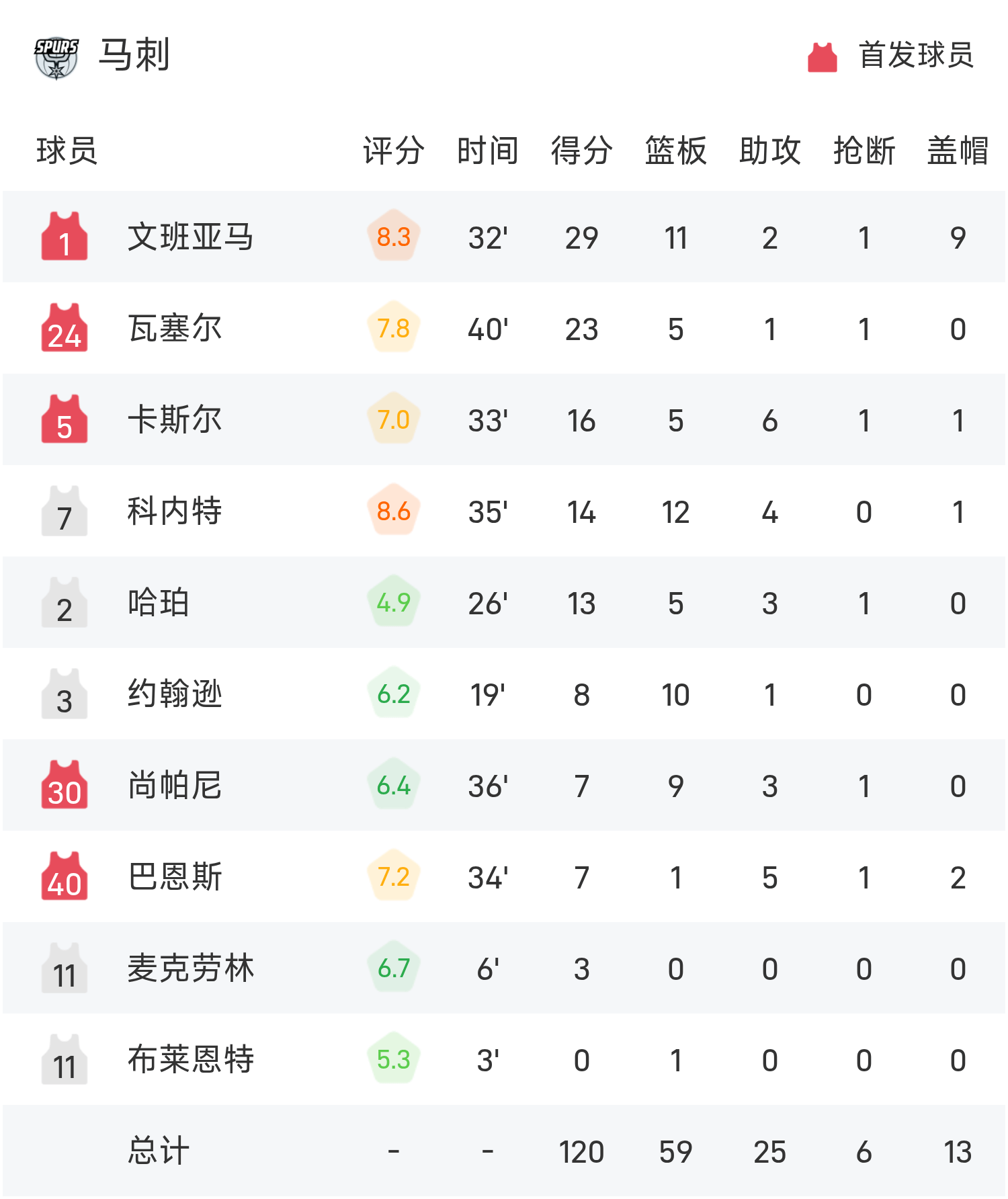 NBA战报:文班亚马29分9帽,马刺120-116延长赛险胜鹈鹕