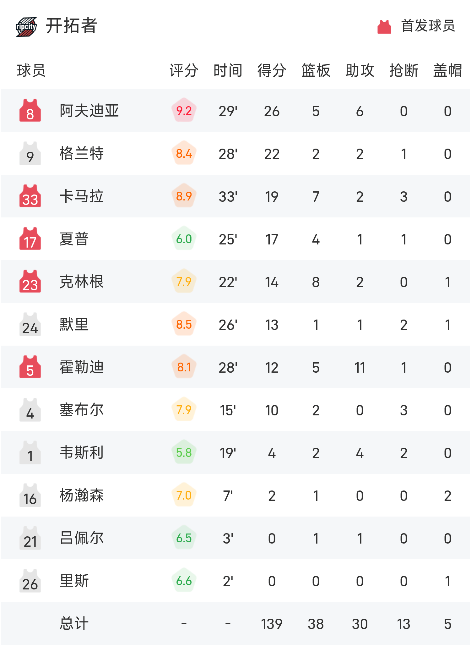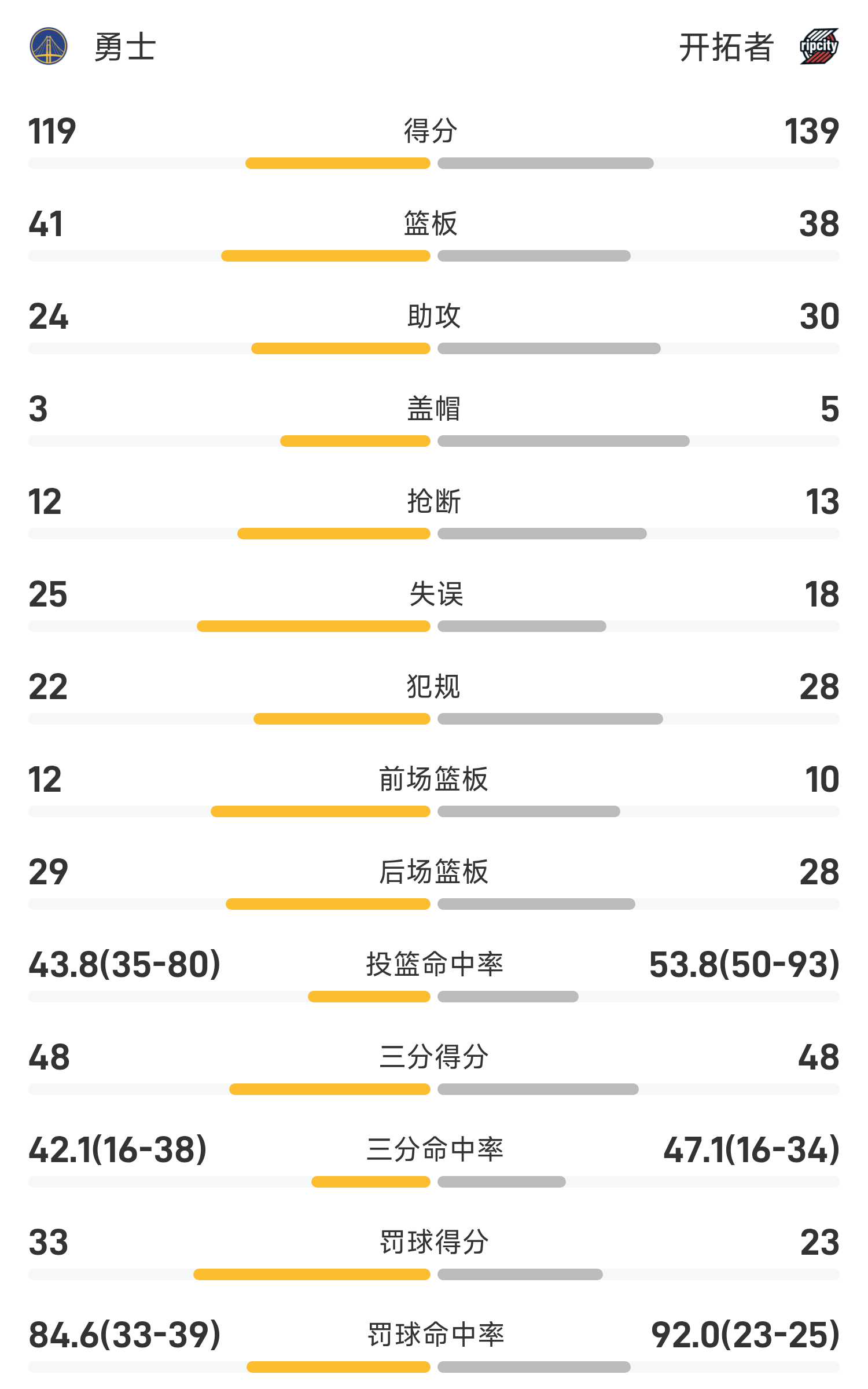 NBA战报:杨瀚森2分1板2帽,开拓者139-119勇士
