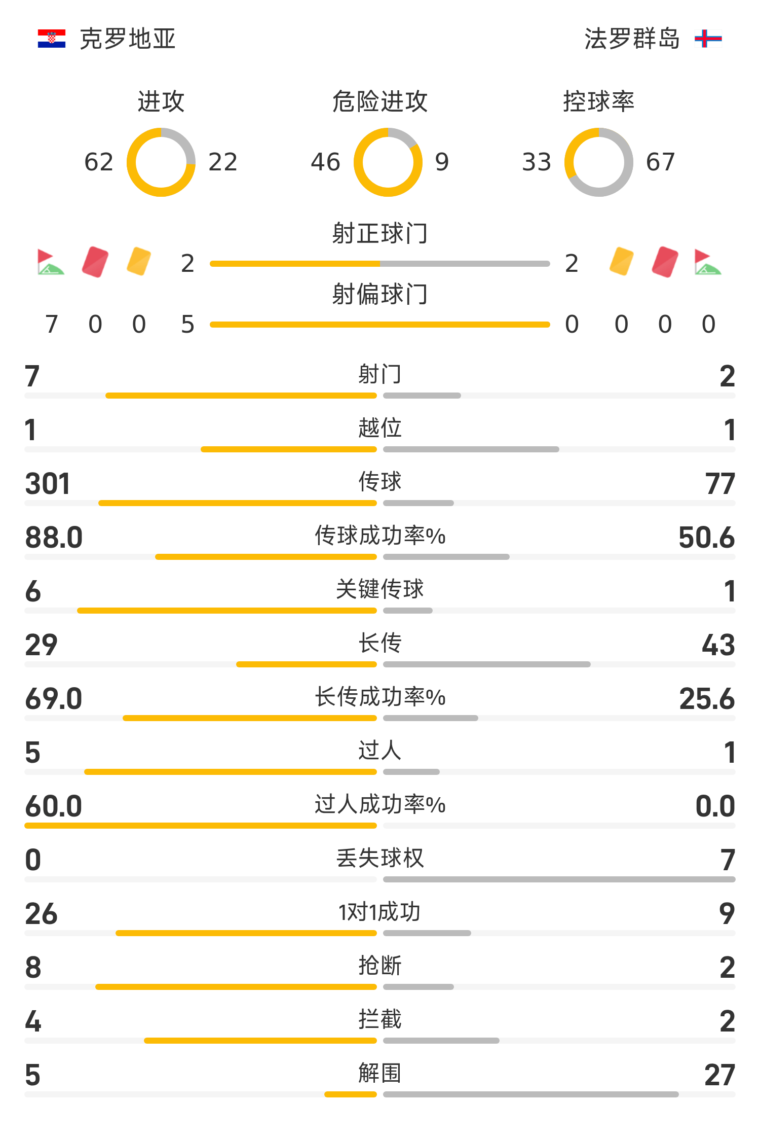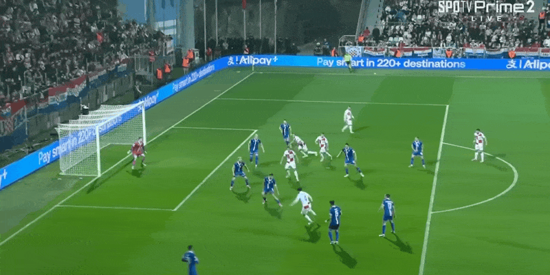 21’克罗地亚险些再度失守!法罗三秒区内无人盯防顶球吊射击中立柱弹出