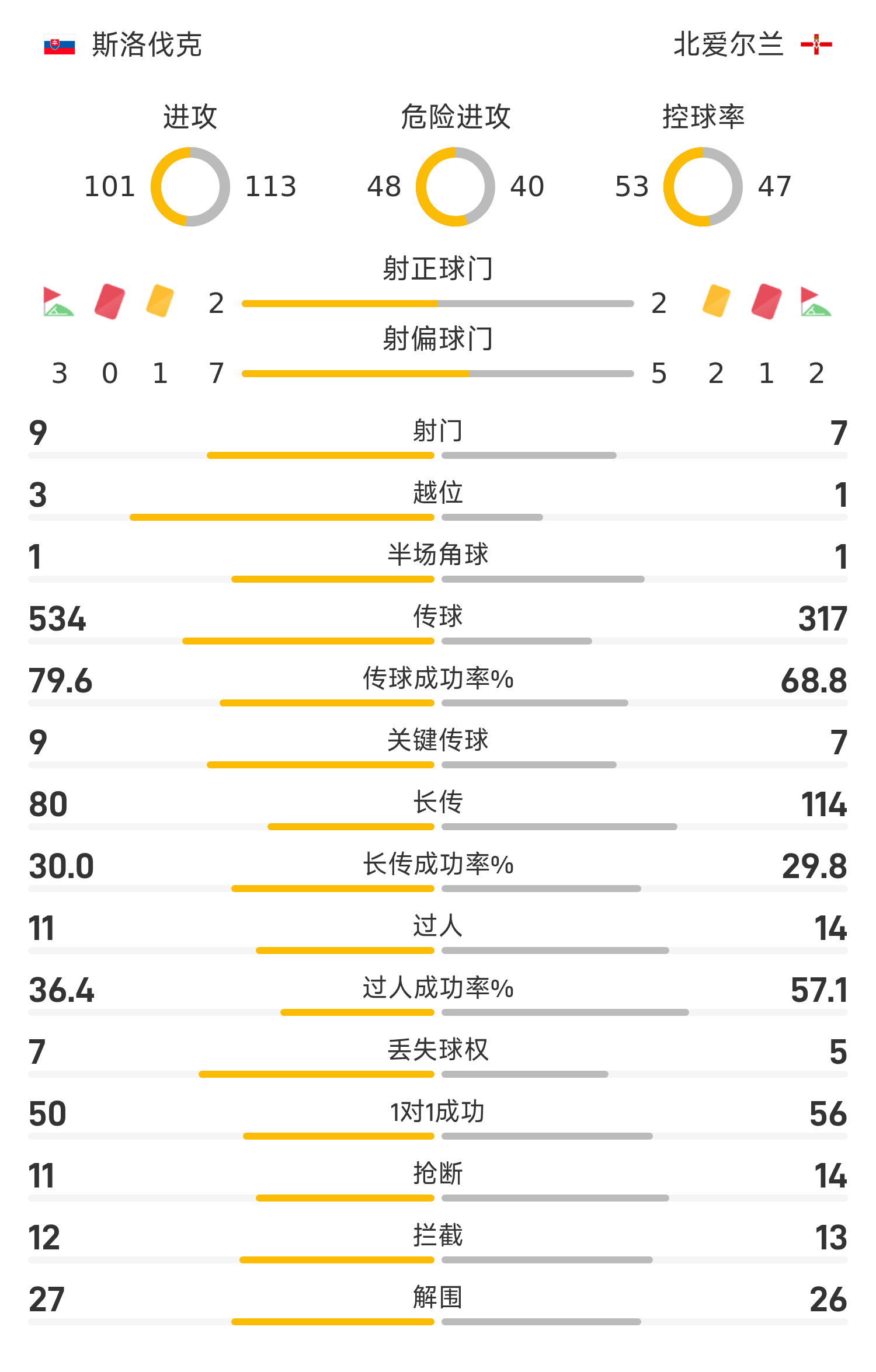 世欧预战报:博贝塞克最后一投,斯洛伐克1-0力克10人北爱尔兰