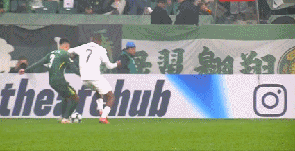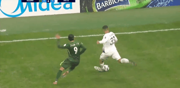 42’张玉宁遭对手胯下运球之辱,法比奥为队友出头推搡对方