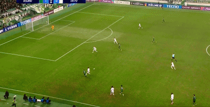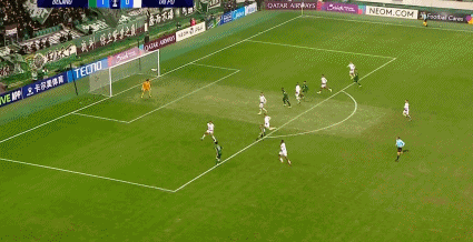 84’林良铭传禁区,塞尔吉尼奥近距离顶球攻门,遭守门员神救球险