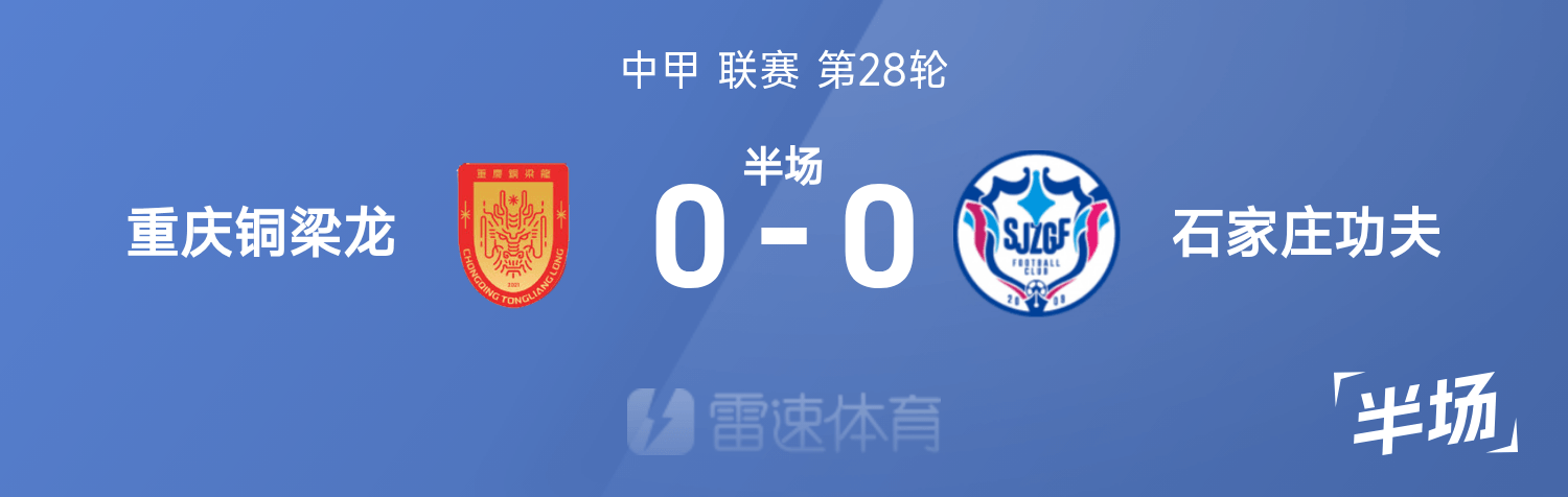 6686体育app10月26日讯 25赛季中甲联赛事第28轮,重庆铜梁龙迎战石家庄功夫。半场战罢,双方赛果分暂为重庆铜梁龙0-0石家庄功夫。