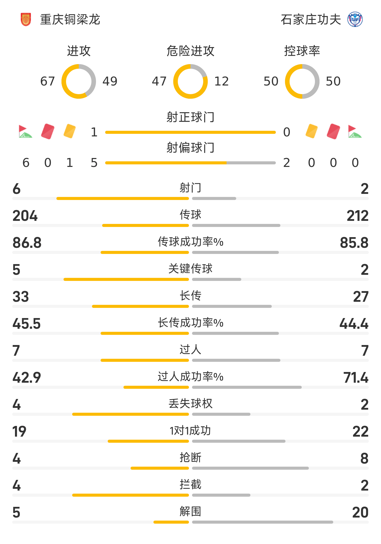 中甲半场:场上僵局暂未打破,重庆铜梁龙0-0石家庄功夫