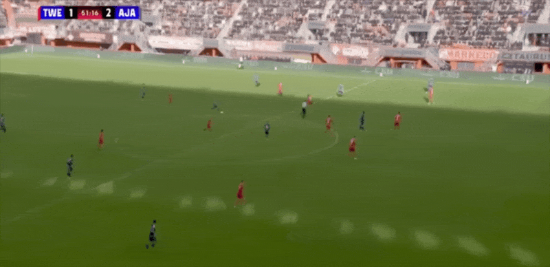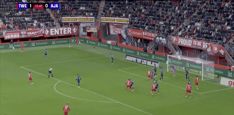 18’韦霍斯特三秒区内转身运球打出阿贾克斯全场第一脚攻门